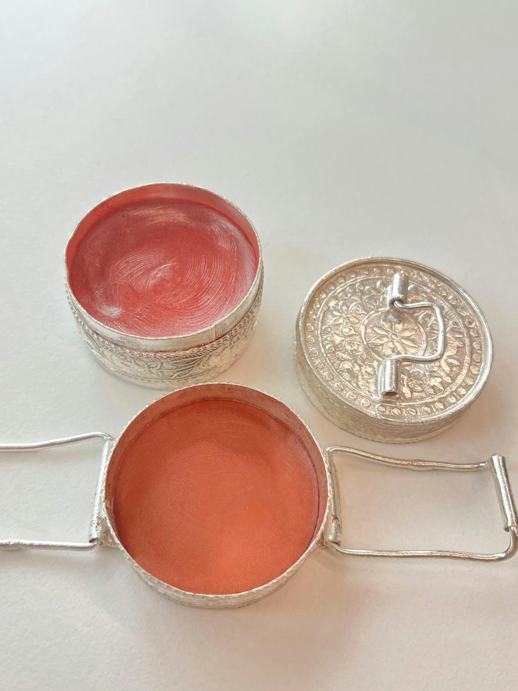 This lip tiffin is very uniquely packaged as it is made in German silver by craftspeople of India. It has a naturally formulated tint & balm, which is safe to use and has a natural pigment. This is a very unique collectible.
