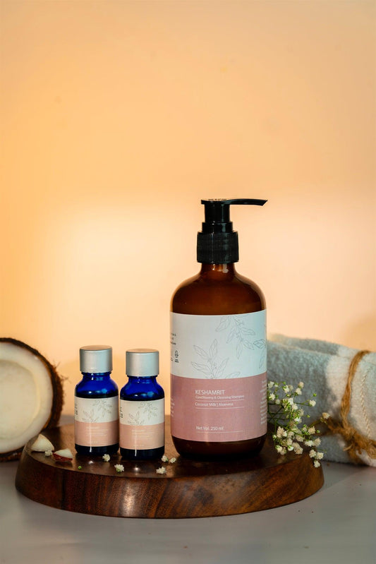 Wash off with lukewarm water using shampoo or Keshamrit scalp cleanser