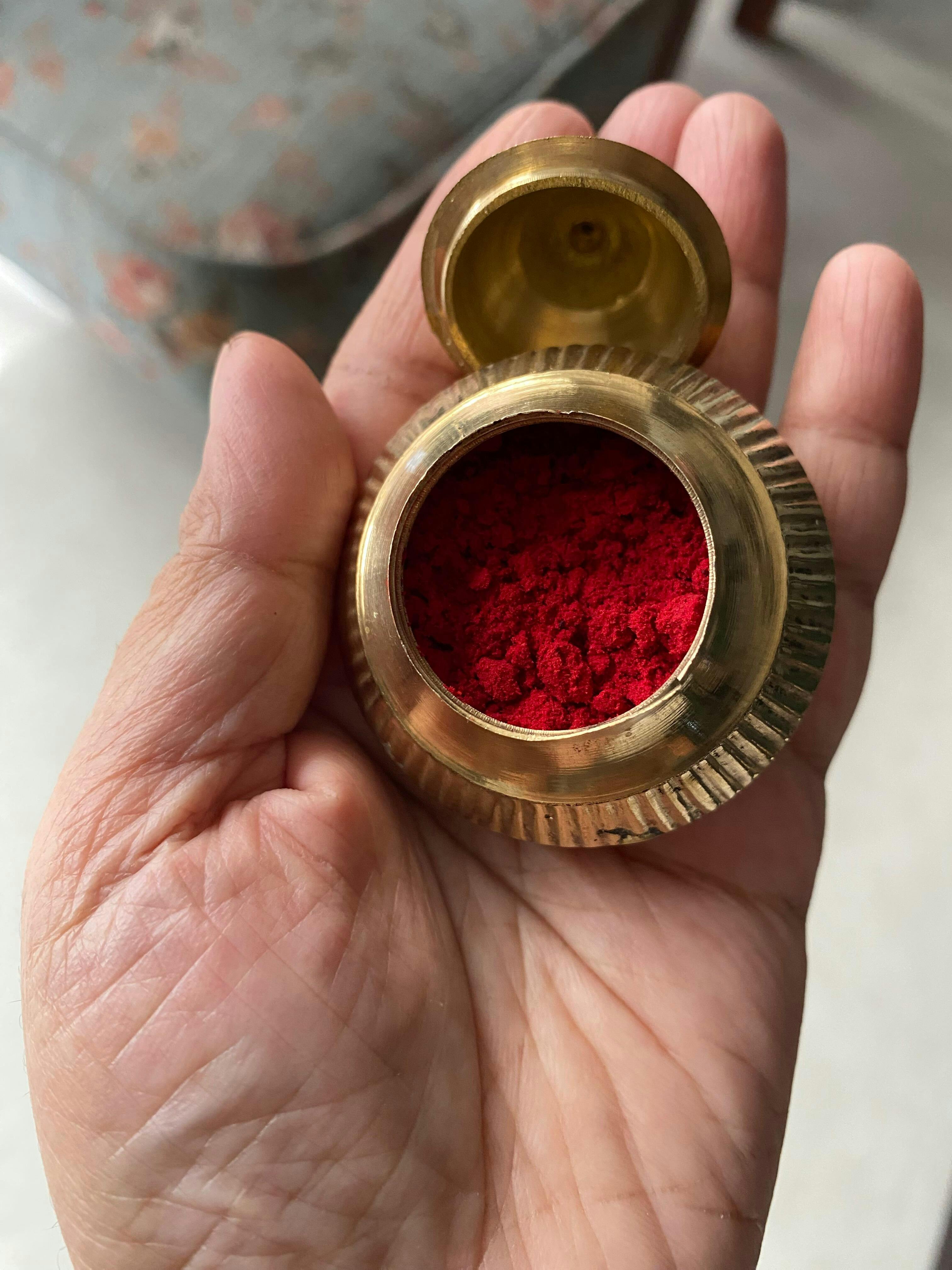 Kumkum has been used for centuries on and is generally applied on the forehead. It activates the Agna chakra and is a symbol of prosperity and devotion. Say bye bye to those sticker bindis and apply pure kumkum!